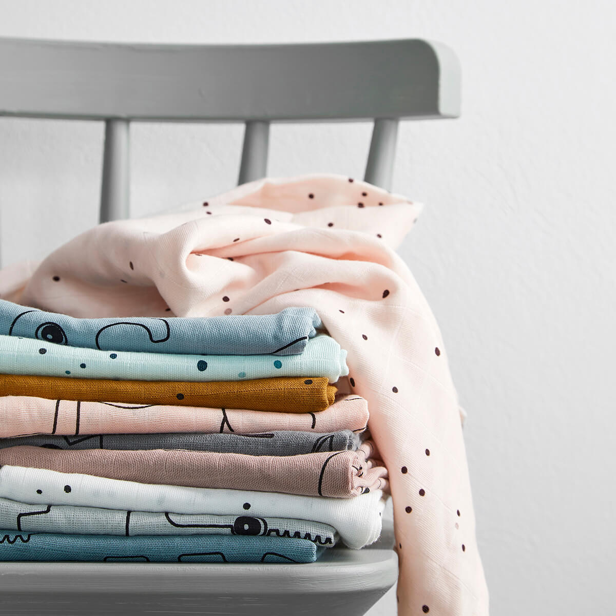 Done By Deer Burp Grey Cloth 2 Pack features two soft, organic cotton burp cloths with a unique contour design for maximum comfort and breathability. Double-layered muslin ensures gentle touch on delicate skin while remaining practical and easy to wash, making them an essential for mealtime and care.